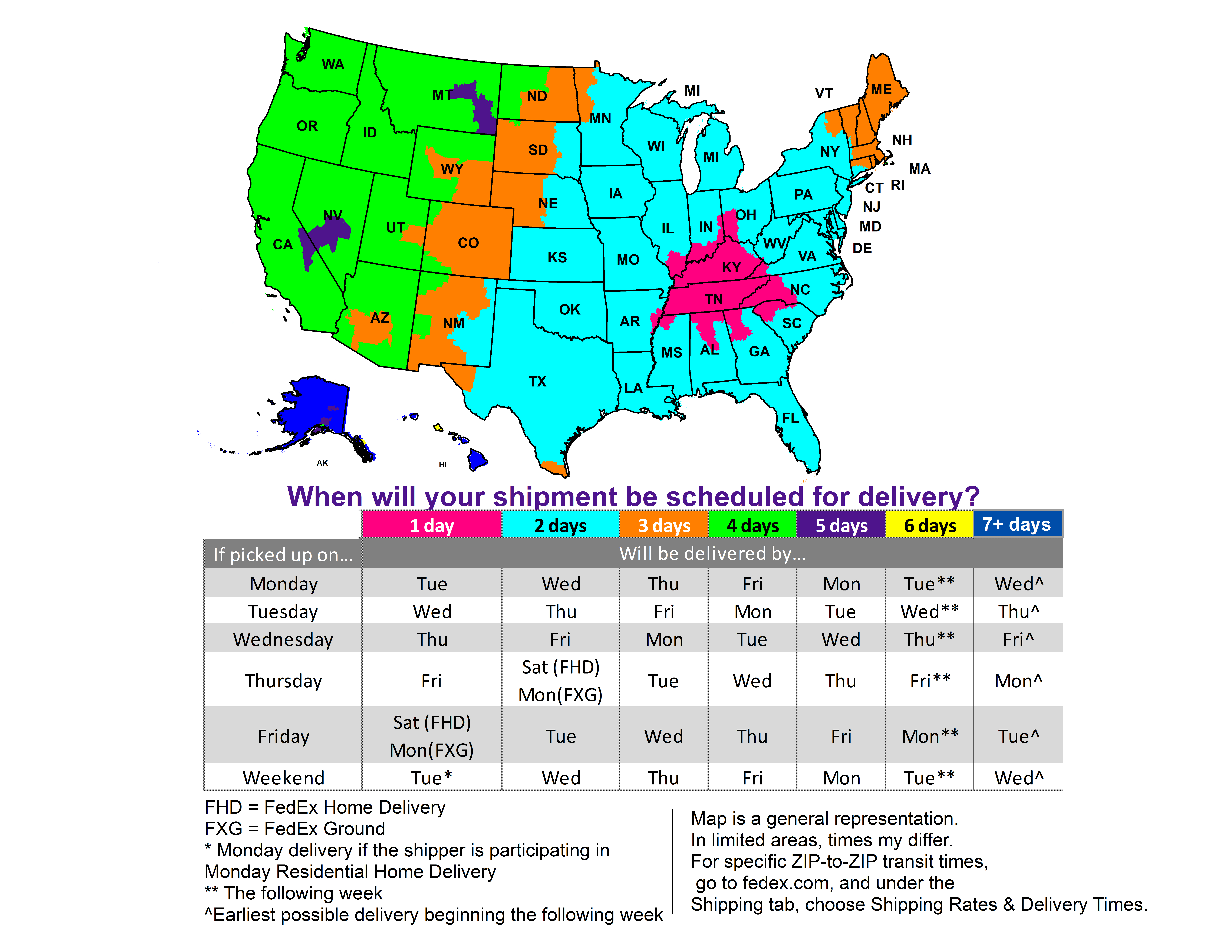 Shipping estimates are approximate. FedEx & UPS usually deliver within the designated time periods above. Most orders that have multiple packages, (eg. mattress & foundation) will arrive on the same day. Rarely, the 2nd package may arrive a day later depending on the available space in the delivery truck. Once the items leave our facility they are the carrier’s responsibility.